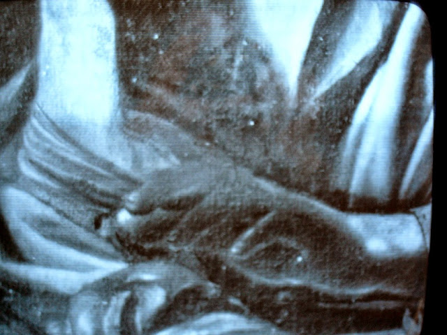 | Più evidente il pentimento dell'indice-(Riflettografia a raggi infrarossi) |